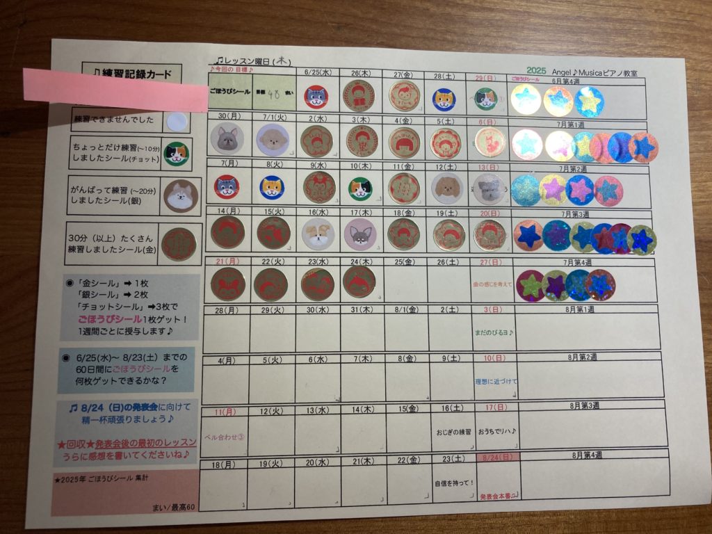 練習記録カードはポイント制で、ご褒美シールを集めていく仕組みです。